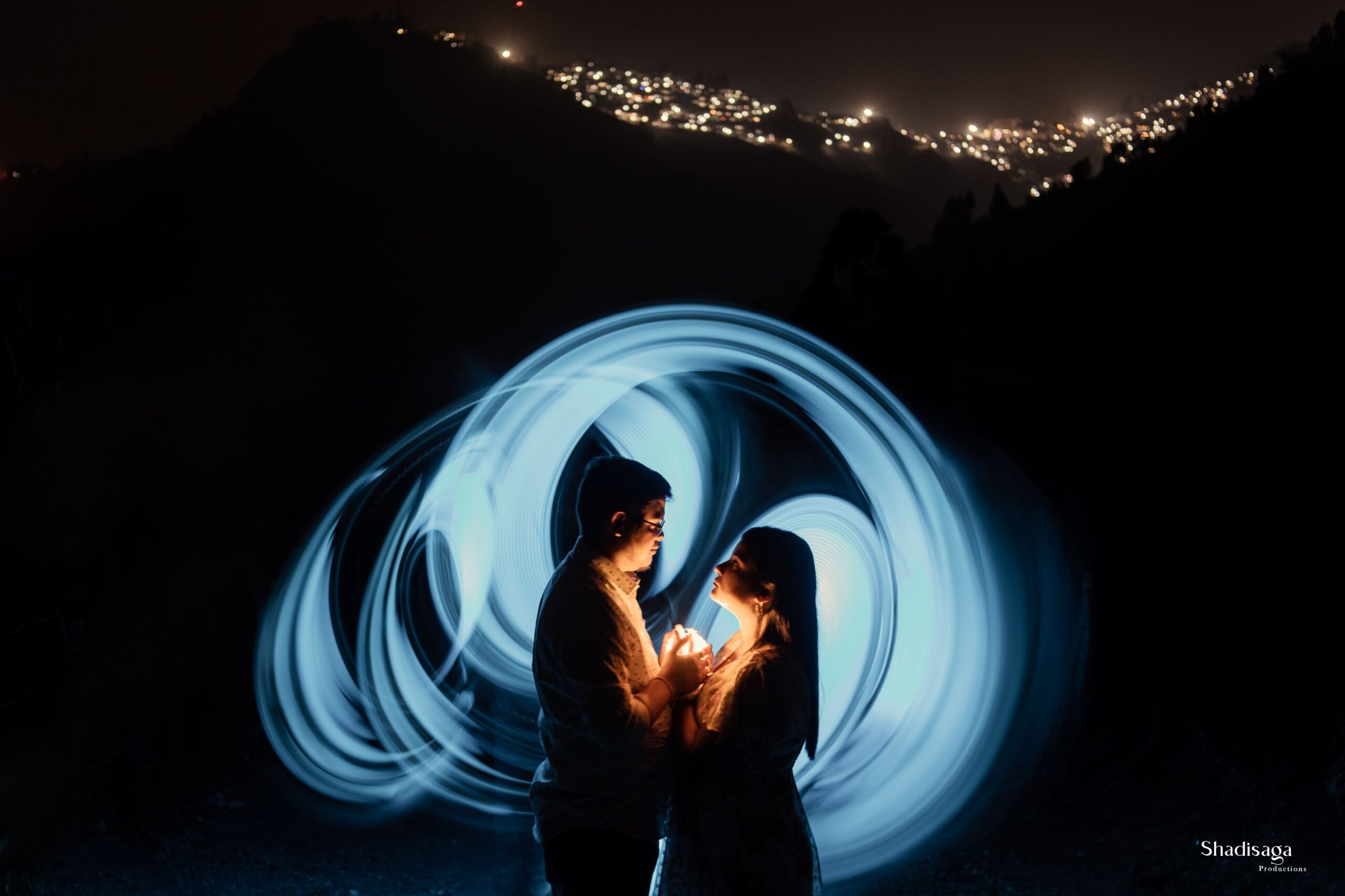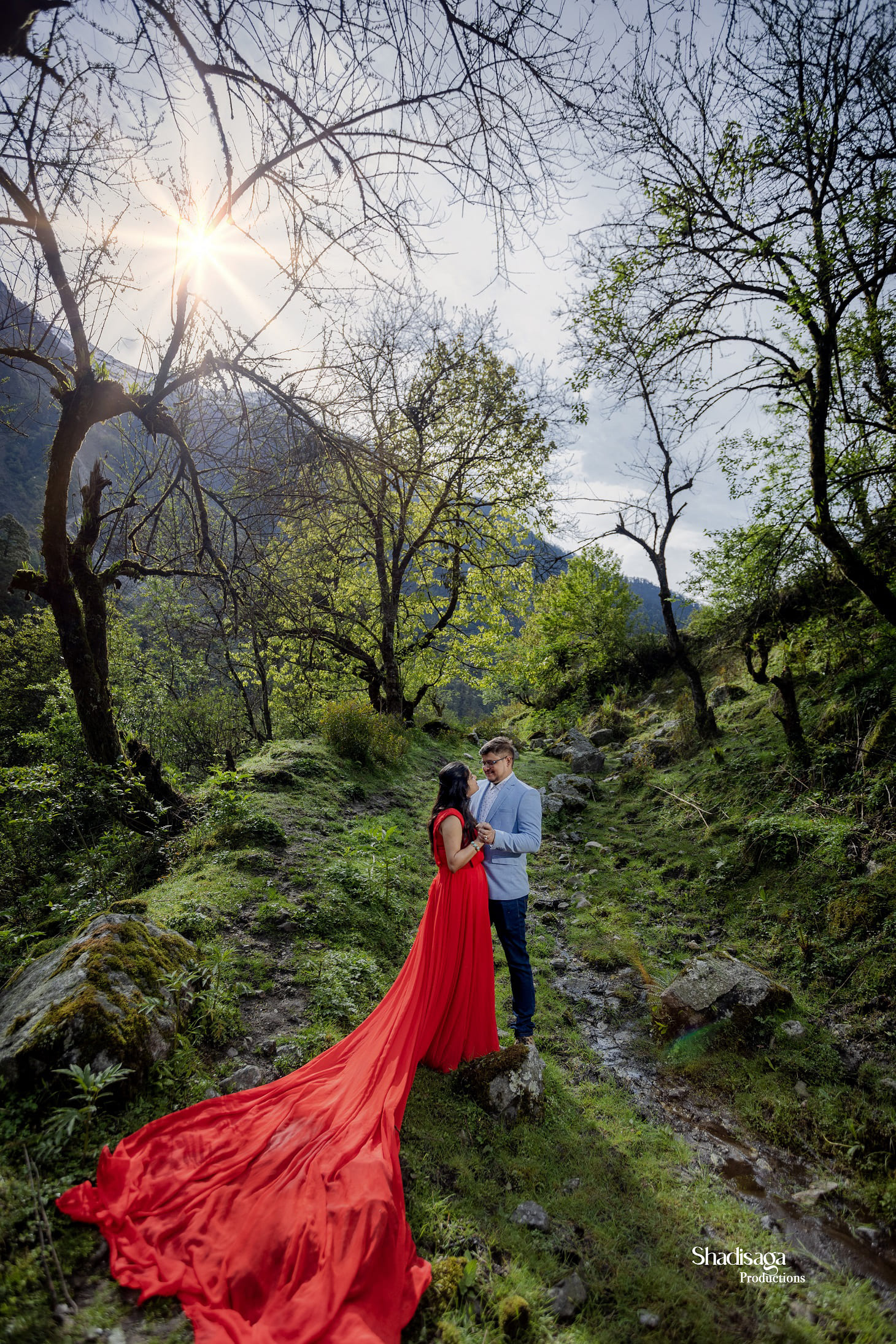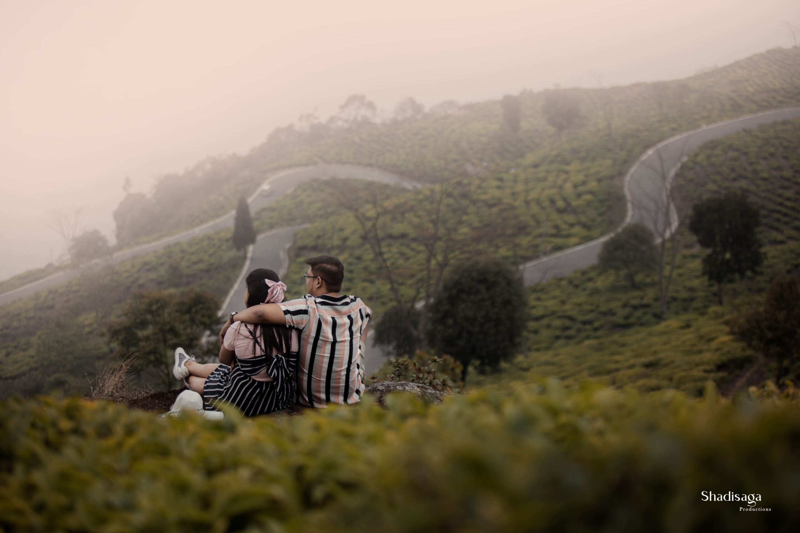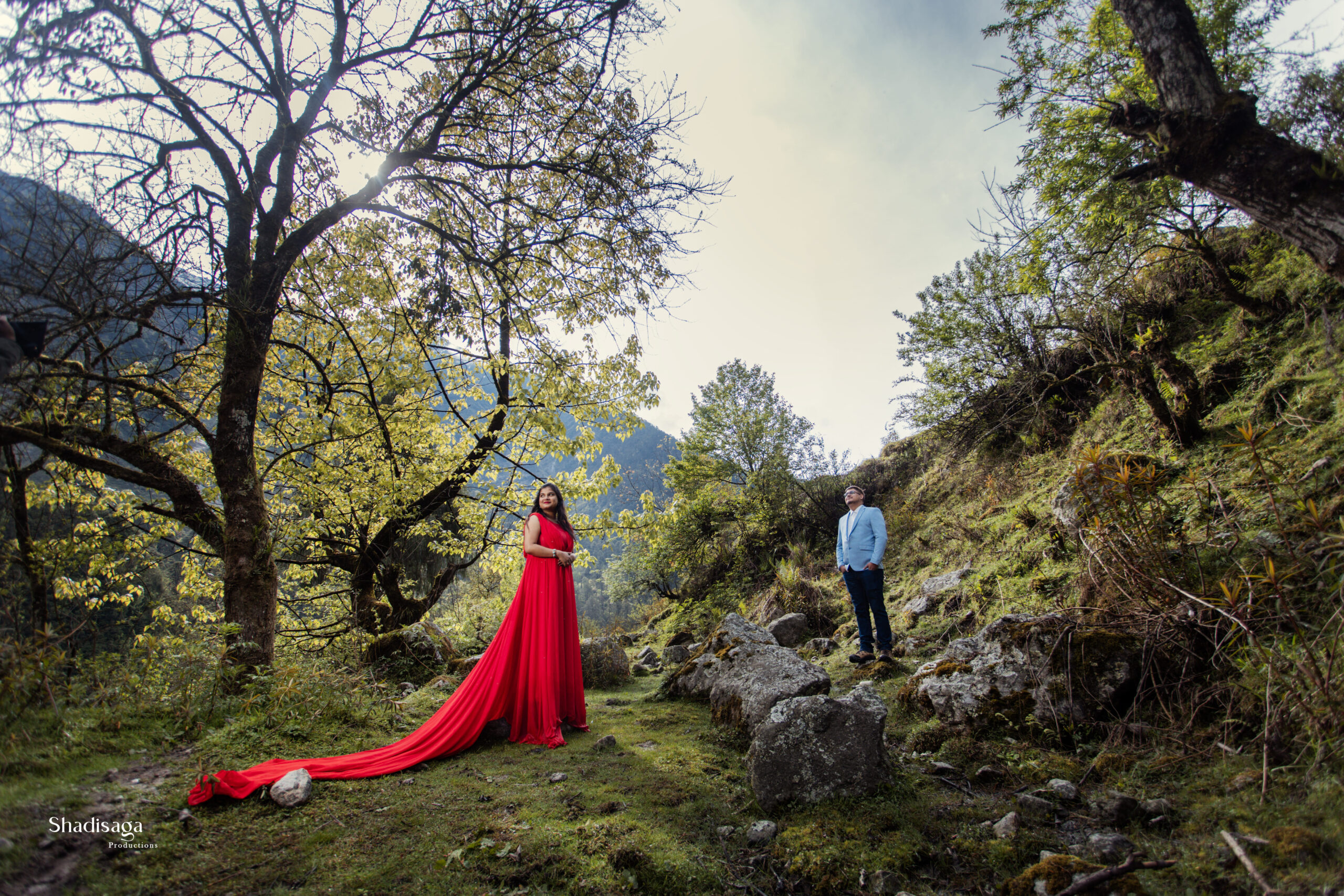 Romantic pre-wedding photoshoot in Sikkim mountains captured by Shadisaga Productions — best wedding photographer in Siliguri and Kolkata.